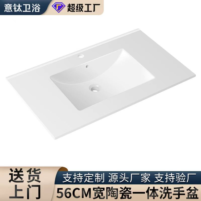 Wastafel keramik lebar 56cm, wastafel keramik terintegrasi, wastafel laundry kamar mandi yang mudah dibersihkan, wastafel terintegrasi untuk kabinet kamar mandi.