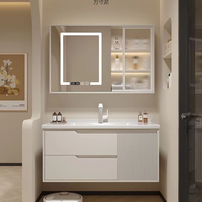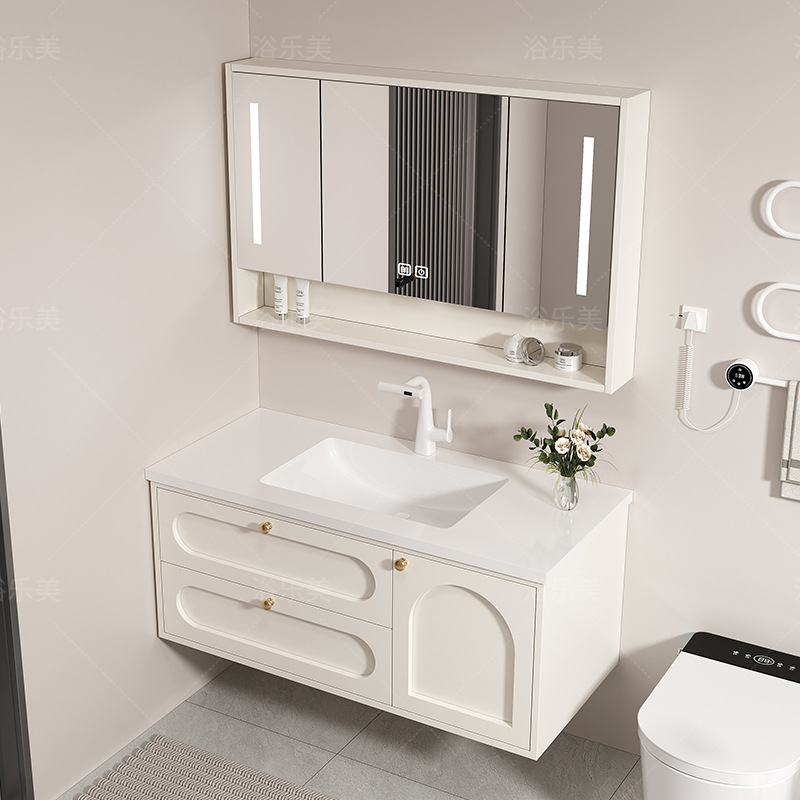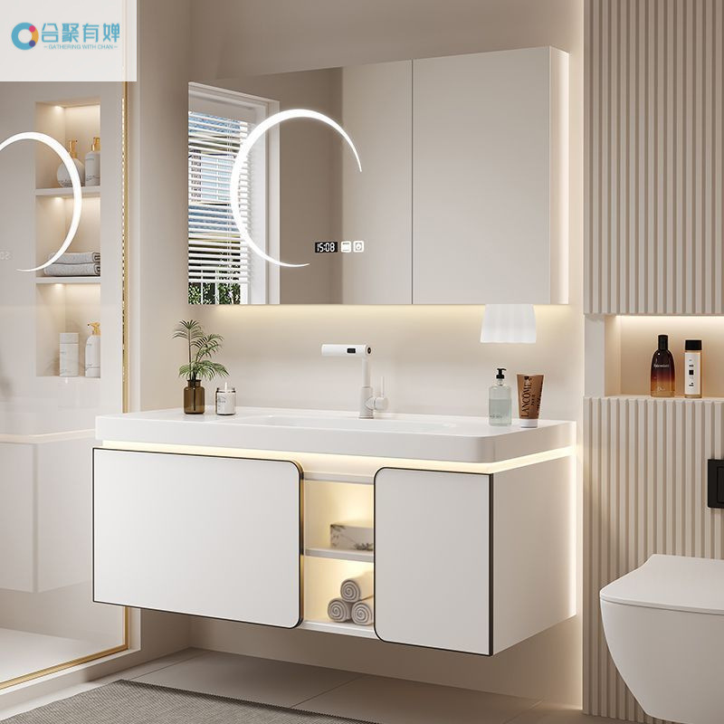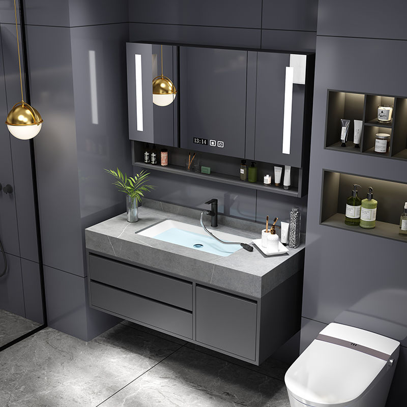 Lemari Kamar Mandi Terintegrasi Papan Batu Kemewahan Ringan Kombinasi Lemari Cuci Tangan Tipe Dinding Gantung Sederhana Modern Meja Cuci Kamar Mandi