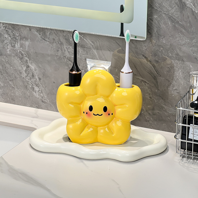 阳光花朵电动牙刷架陶瓷牙膏收纳底座卫生间洗手台置物牙具收纳架