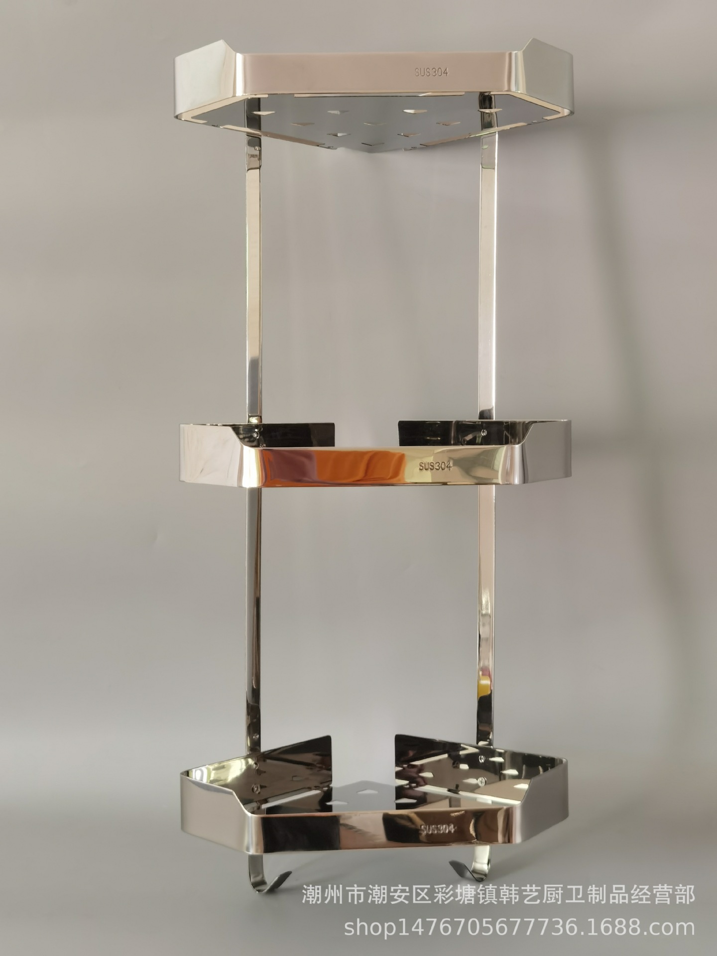 Rak dinding sudut dua lapis, rak penyimpanan kait tiga lapis, rak dinding bentuk berlian, tebal 304