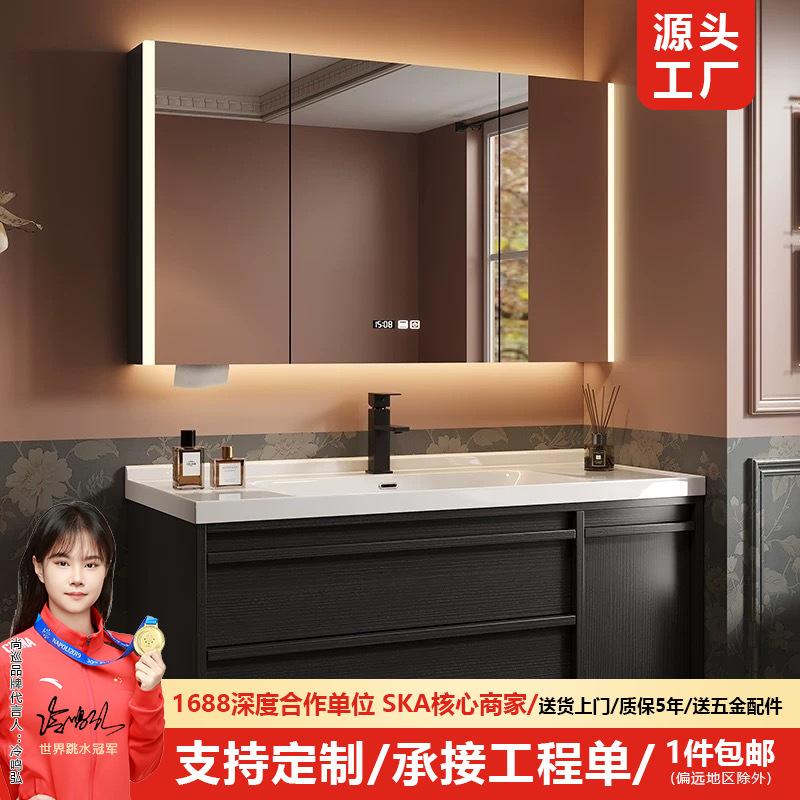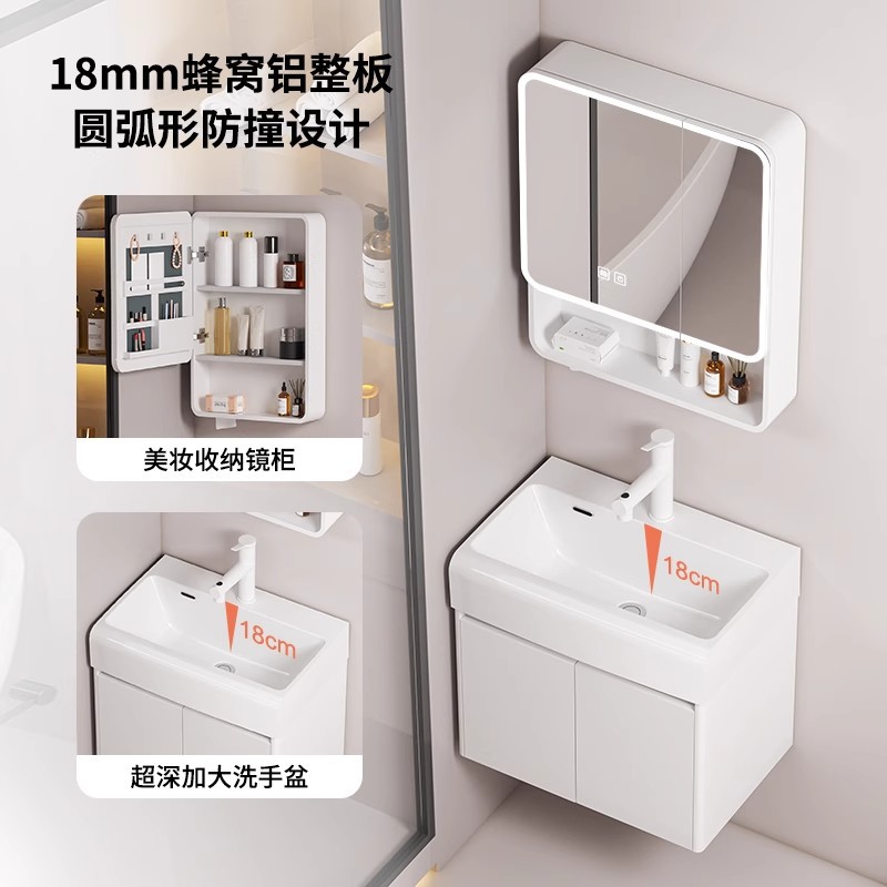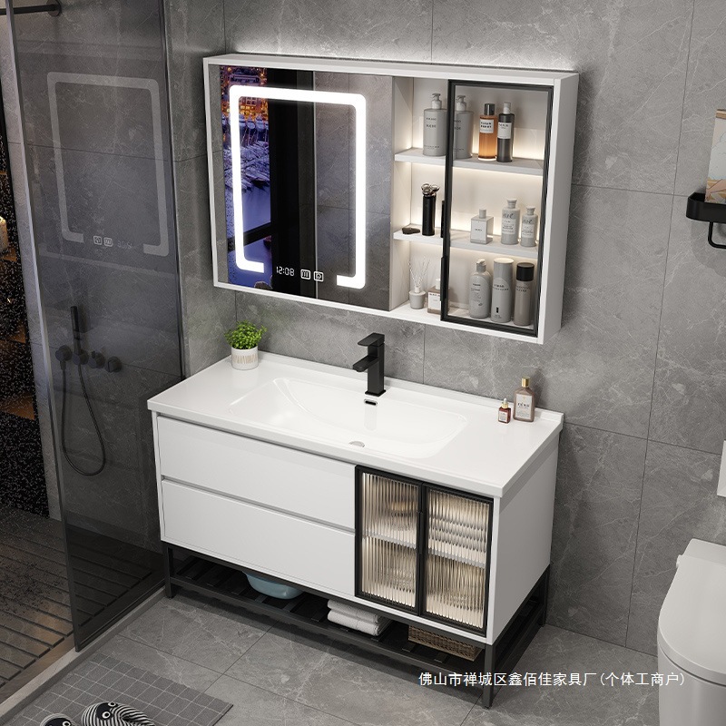 Kombinasi Lemari Kamar Mandi Cerdas Kemewahan Sederhana Modern Meja Cuci Baskom Satu Tubuh Keramik Kamar Mandi Lemari Cermin Baskom Cuci Tangan