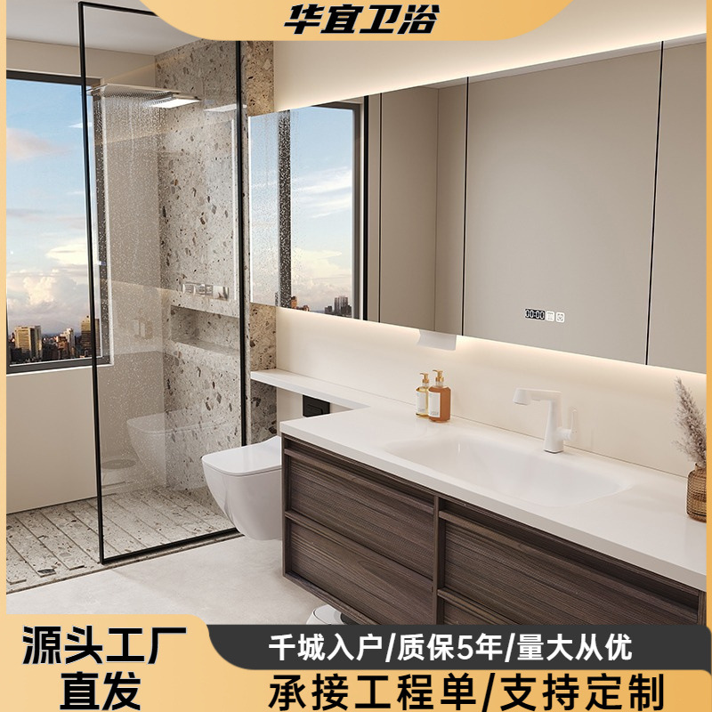 Lemari Kamar Mandi Cerdas Baskom Kamar Mandi Tahan Air dan Tahan Trendi Dekorasi Satu Tubuh Keramik Meja Rias Kamar Mandi Sederhana Modern Kayu Solid