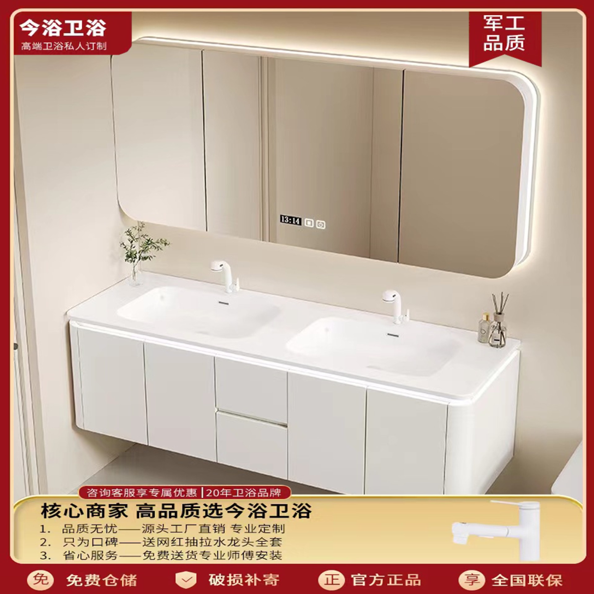 Set Kabinet Kamar Mandi Kayu Solid Meijia dengan Laci Ganda, Kabinet Utama, Kabinet Cermin Pintar, dan Meja Rias Penyimpanan Samping 839.