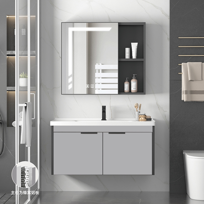 Ruang sarang lebah aluminium kabinet kamar mandi kombinasi laci kamar mandi keramik terintegrasi kabinet kamar mandi wastafel