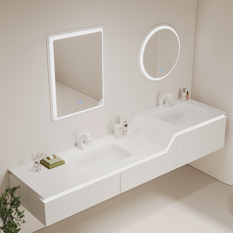 Kabinet wastafel kamar mandi, kabinet kamar mandi kombinasi wastafel terintegrasi keramik cermin feng shui dorong tarik tersembunyi