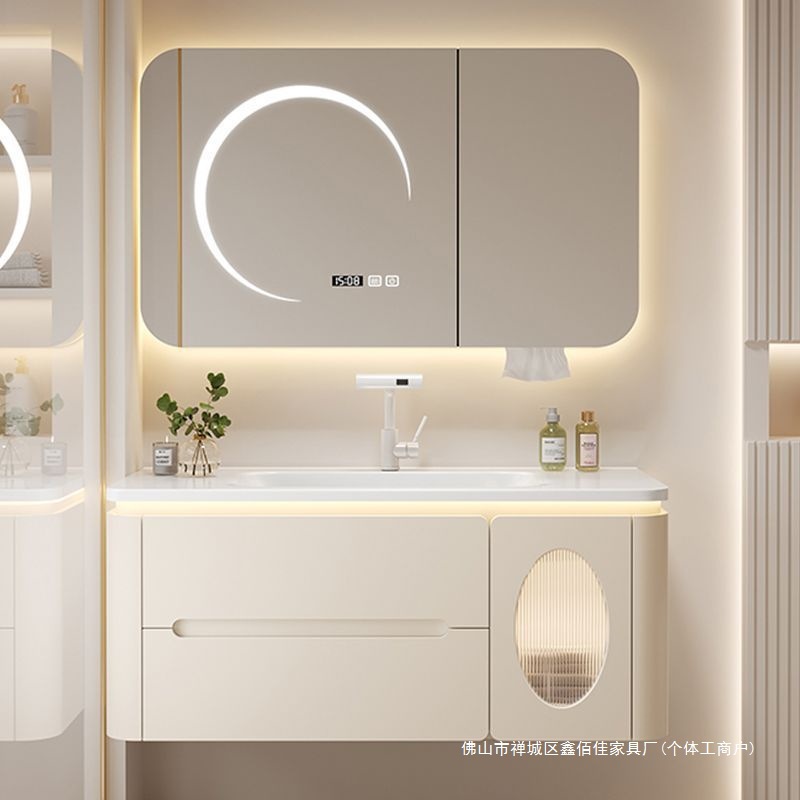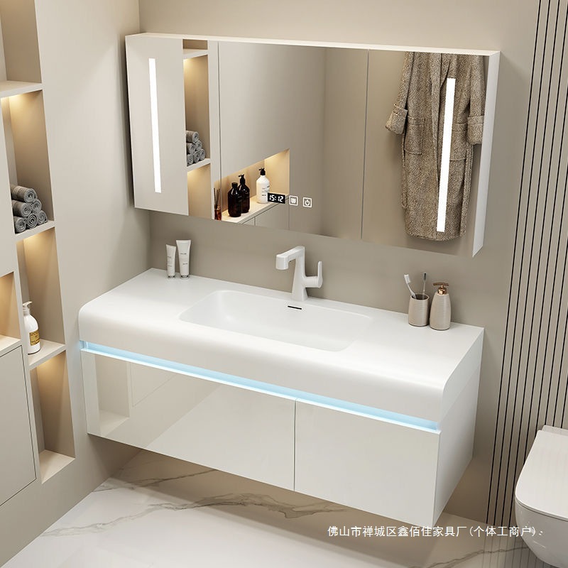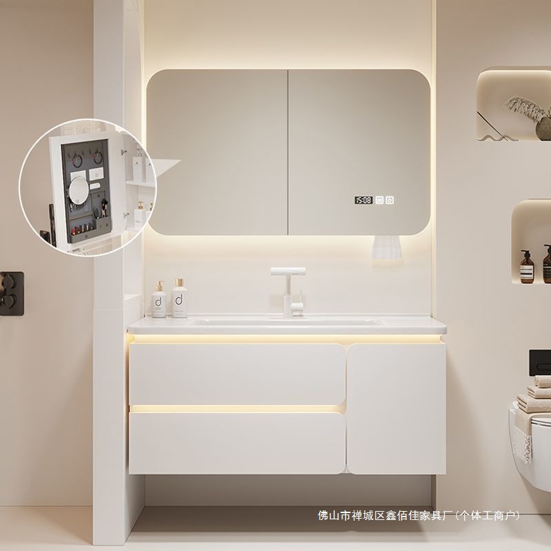 Kombinasi Lemari Kamar Mandi Baskom Satu Tubuh Keramik Baskom Cuci Tangan Mewah Cerdas Ringan Lemari Baskom Cuci Wajah Kamar Mandi Sederhana Kamar Mandi