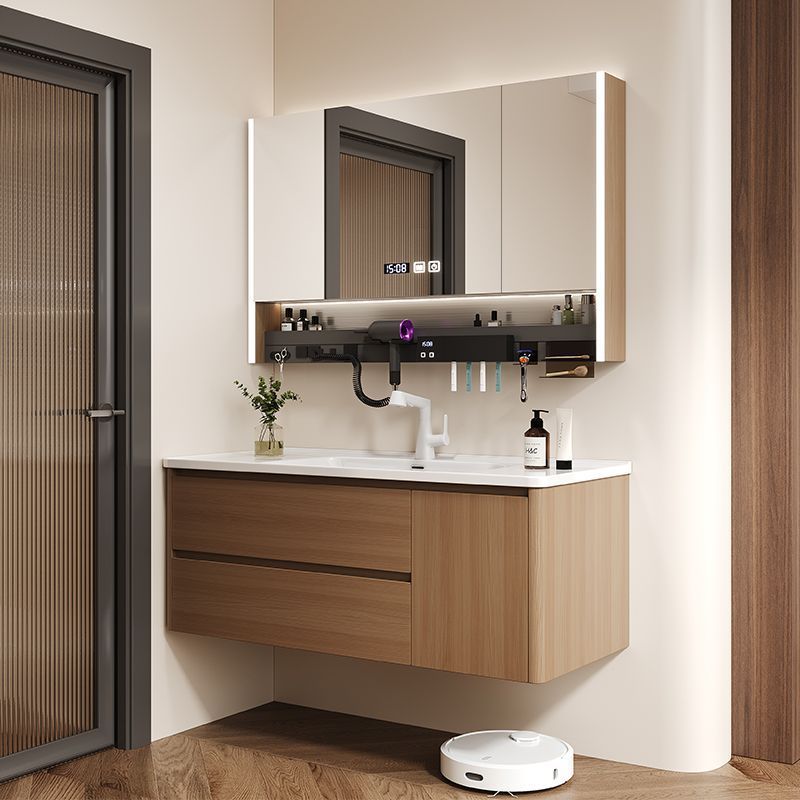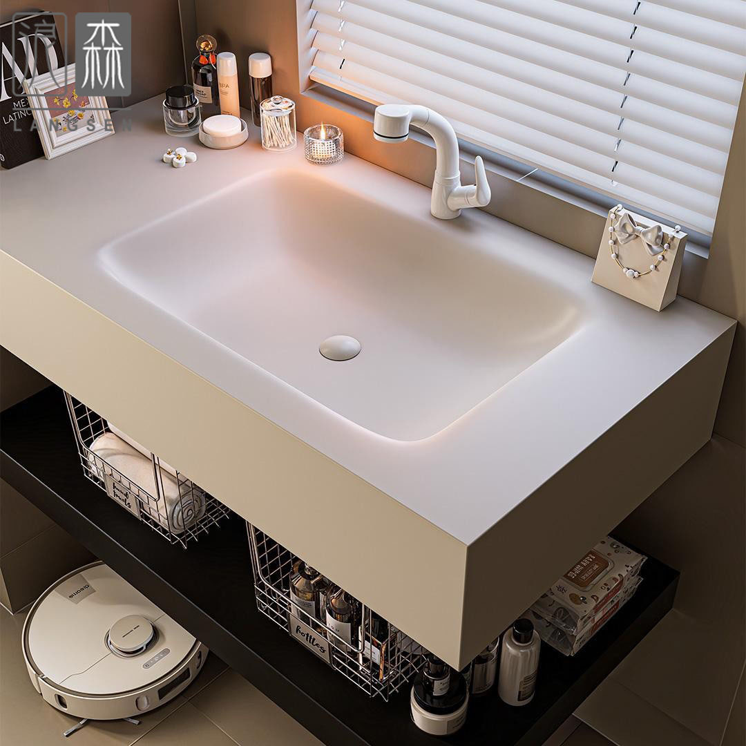 Lemari Kamar Mandi Cerdas Baskom Kamar Mandi Tahan Air dan Tahan Trendi Dekorasi Satu Tubuh Keramik Meja Rias Kamar Mandi Sederhana Modern Kayu Solid