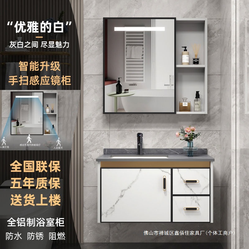 Ruang Ruang Aluminium Aluminium Kabinet Kamar Mandi Kombinasi Meja Cuci Kamar Mandi Baskom Keramik Terpadu Baskom Cuci Tangan Kabinet Cermin Cerdas