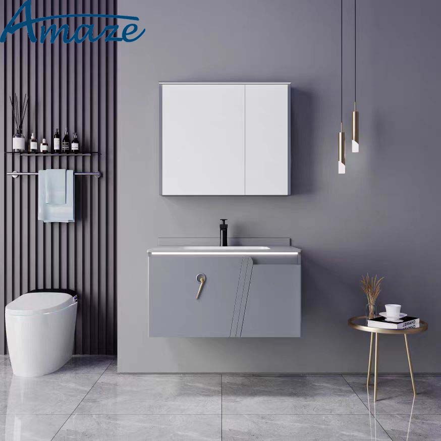 Lemari Kamar Mandi Papan Batu Aluminium Luar Angkasa Tipe Lantai Baskom Cuci Wajah Tipe Kecil Lemari Kombinasi Toilet Baskom Cuci Tangan