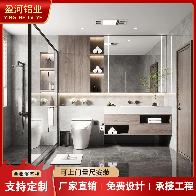 All-furniture aluminium menebal ruang aluminium kabinet kamar mandi penyimpanan kombinasi kayu grain gantung tahan air aluminium Aloi cuci kabinet produsen