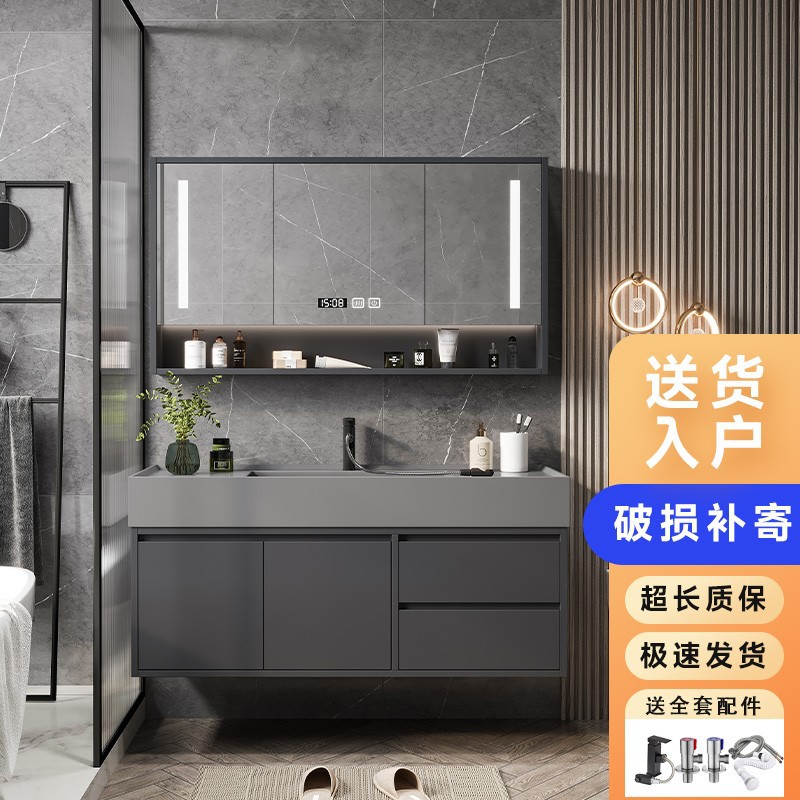 Kombinasi Kabinet Kamar Mandi Nano Batuan Satu Tubuh Baskom Cuci Tangan Kayu Solid Cerdas Baskom Cuci Wajah Meja Cuci Kemewahan Ringan Kamar Mandi