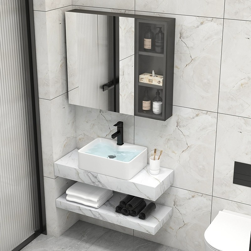 Papan Batu Kemewahan Ringan Keramik Baskom Mulus Lemari Kamar Mandi Kayu Solid Kombinasi Meja Cuci Tangan Baskom Cuci Wajah Lemari Kamar Mandi