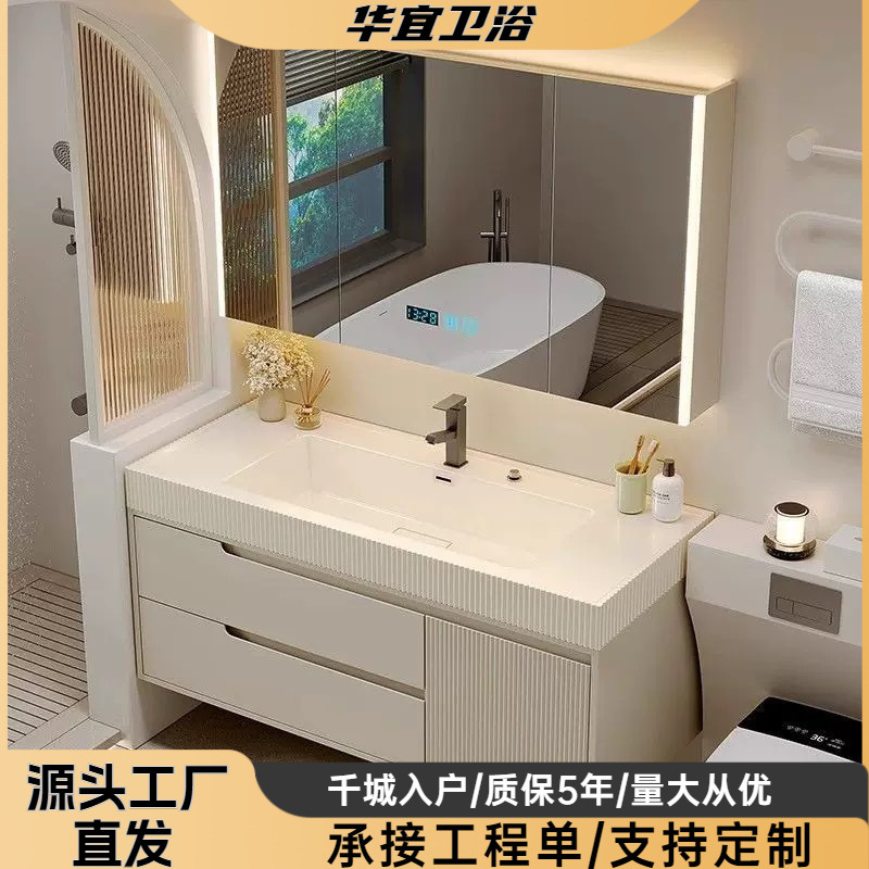Kombinasi Lemari Kamar Mandi Baskom Satu Tubuh Keramik Baskom Cuci Tangan Mewah Cerdas Ringan Lemari Baskom Cuci Wajah Kamar Mandi Sederhana Kamar Mandi
