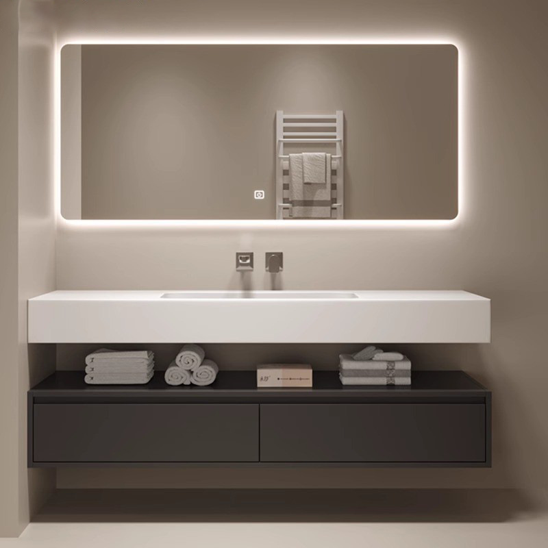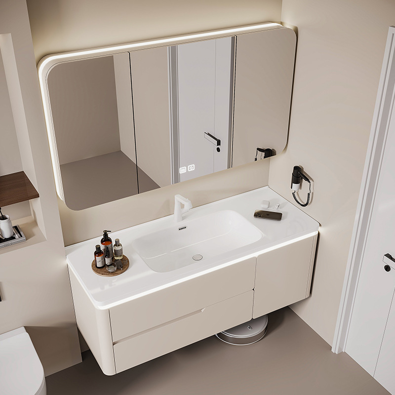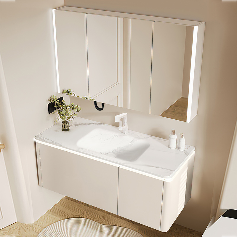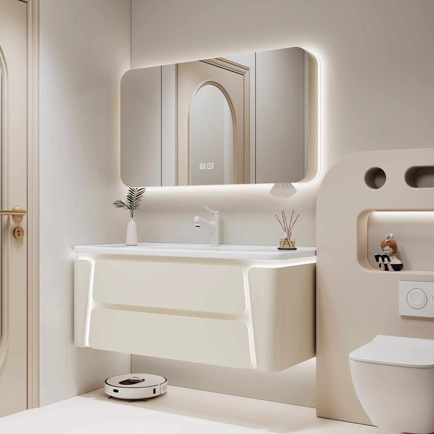 Bak cuci kamar mandi, dua lapisan piring batu terintegrasi mulus keramik kabinet kamar mandi cermin pintar kombinasi bak cuci kamar mandi