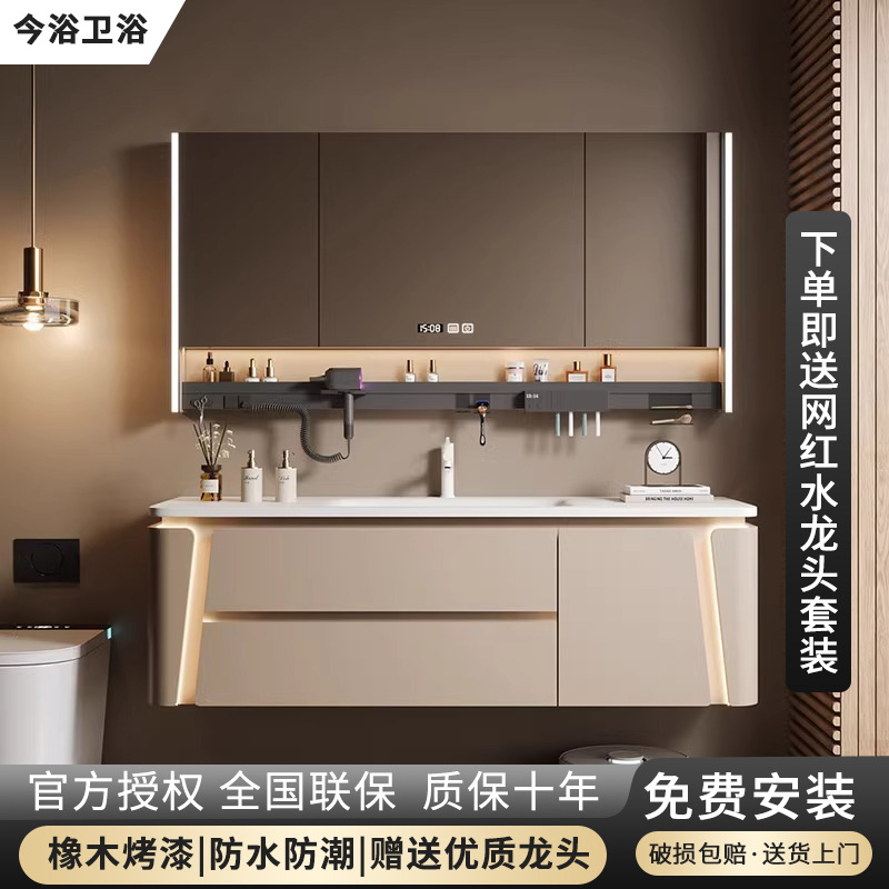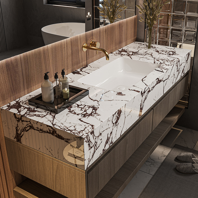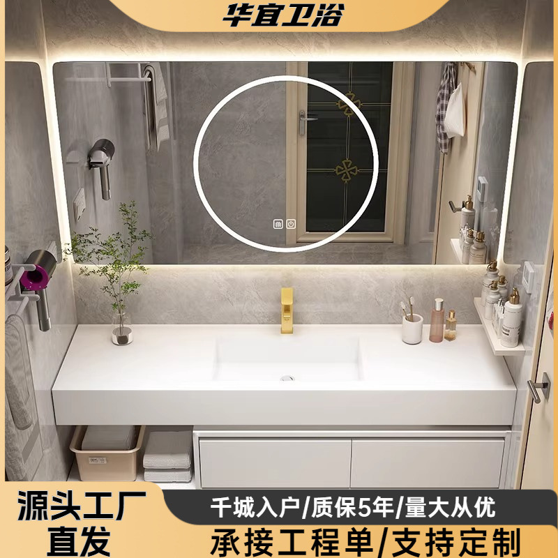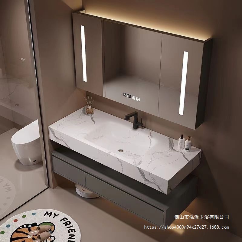 F Lemari Kamar Mandi Satu Tubuh Terbuat dari Papan Batu Kemewahan Ringan Sederhana Modern Meja Cuci Kamar Mandi Meja Cuci Baskom