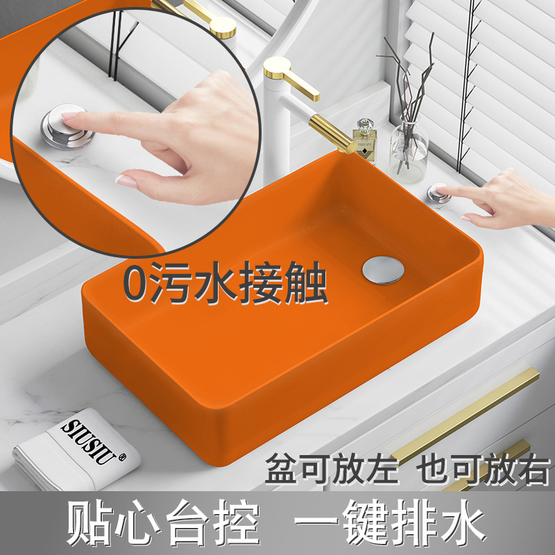 Baskom Atas Meja Baskom Cuci Air Bawah Air Sisi Cuci Tangan Oranye Baskom Cuci Air Baskom Drainase Kontrol Meja Kiri dan Kanan