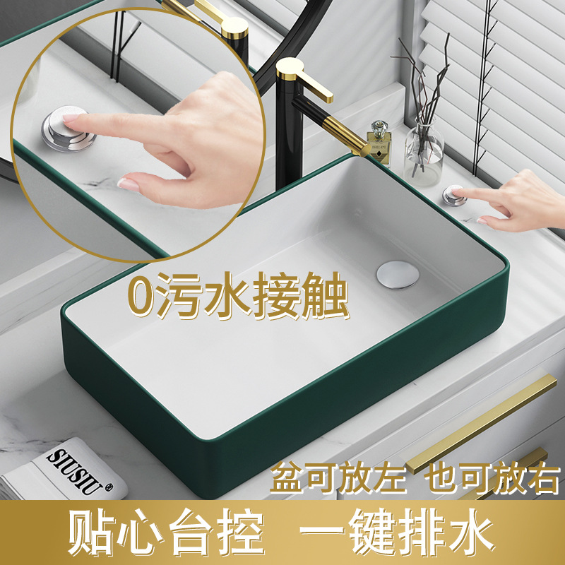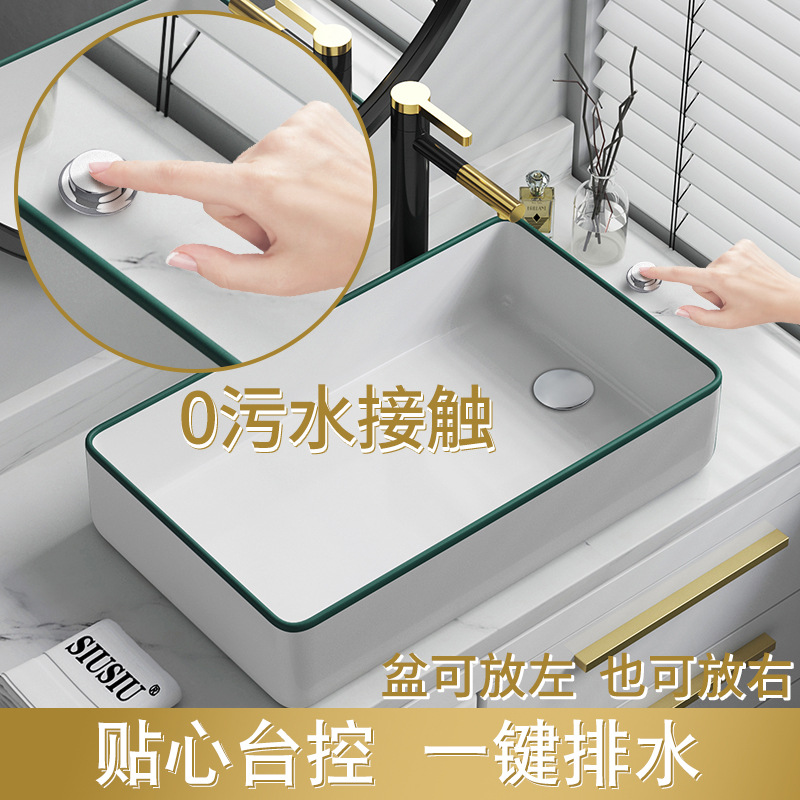 Baskom Cuci Tangan Balkon Baskom Bawah Meja Datar Persegi Super Sempit Baskom Cuci Wajah Tertanam Keramik Rumah Tangga Kamar Mandi