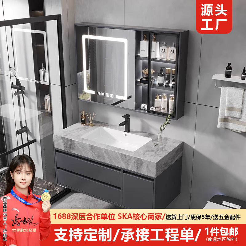 [Model Teknik] Hotel Rock Plate Keramik Seamless Lemari Kamar Mandi Kombinasi Wastafel Wastafel Cuci Tangan Kamar Mandi
