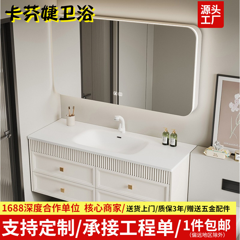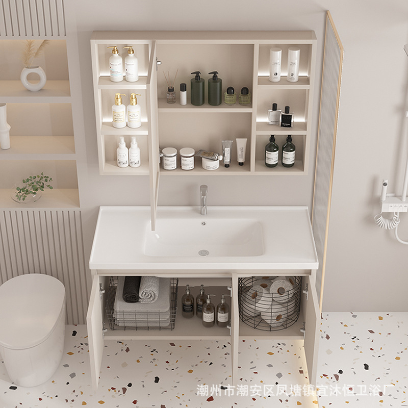 Wastafel pintar, Modern, cahaya mewah, gaya krim, lemari kamar mandi, terintegrasi, Meja cuci, sederhana