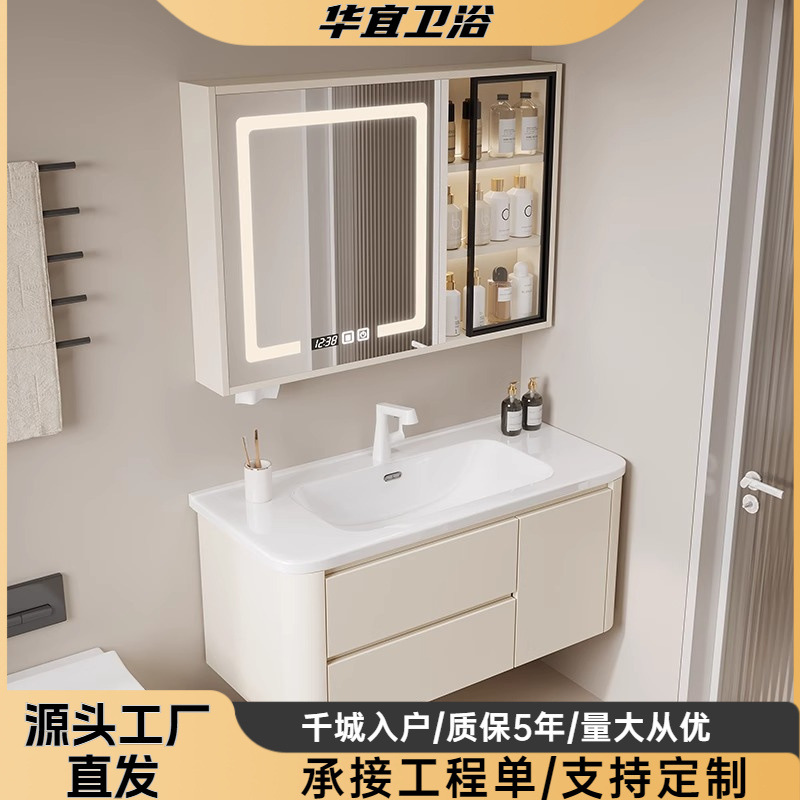 Wastafel kamar mandi wastafel wastafel sederhana modern cerdas kombinasi lemari kamar mandi kayu solid