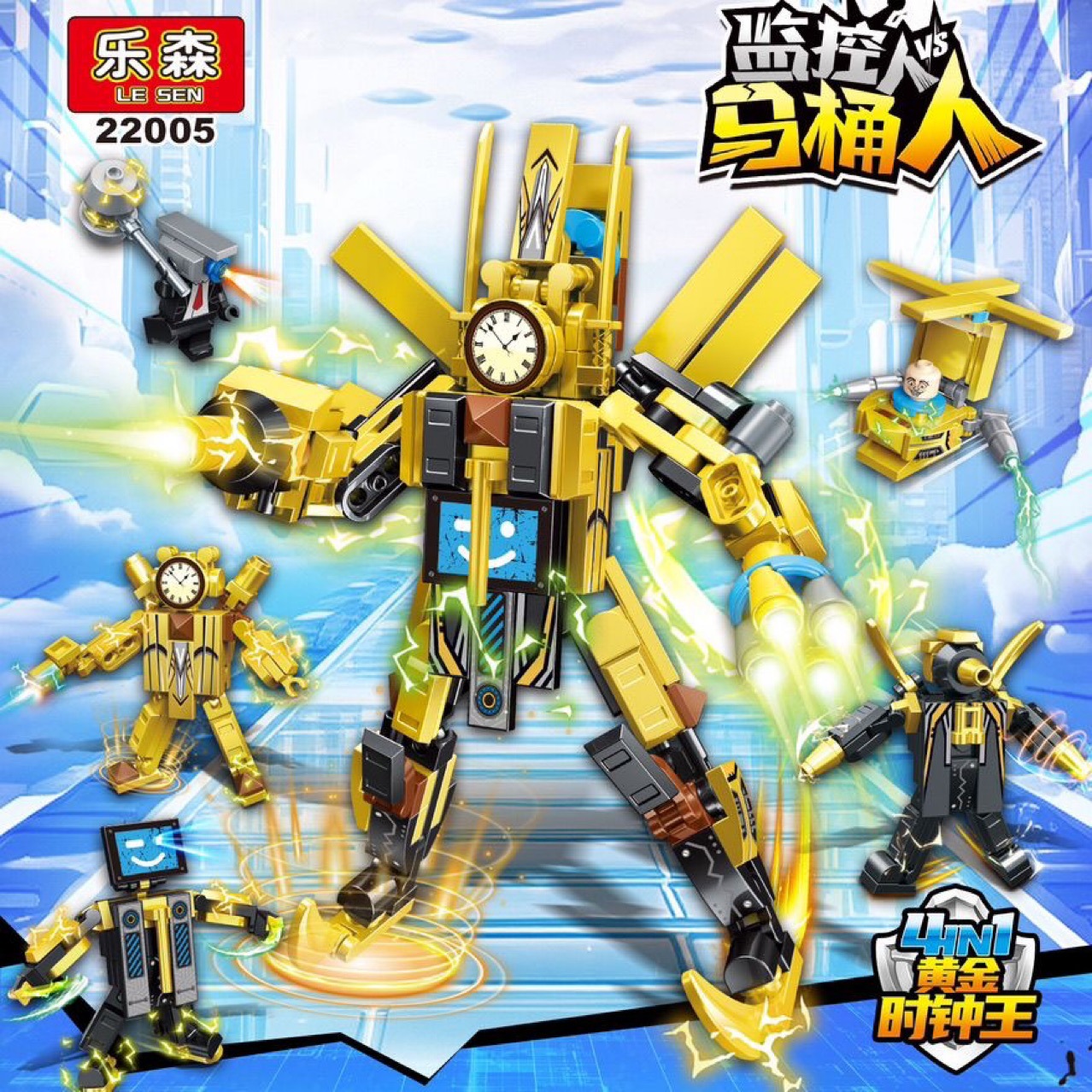 22005 toilet volume buatan kayu kompatibel dengan Lego anak edukasi jam emas mainan King