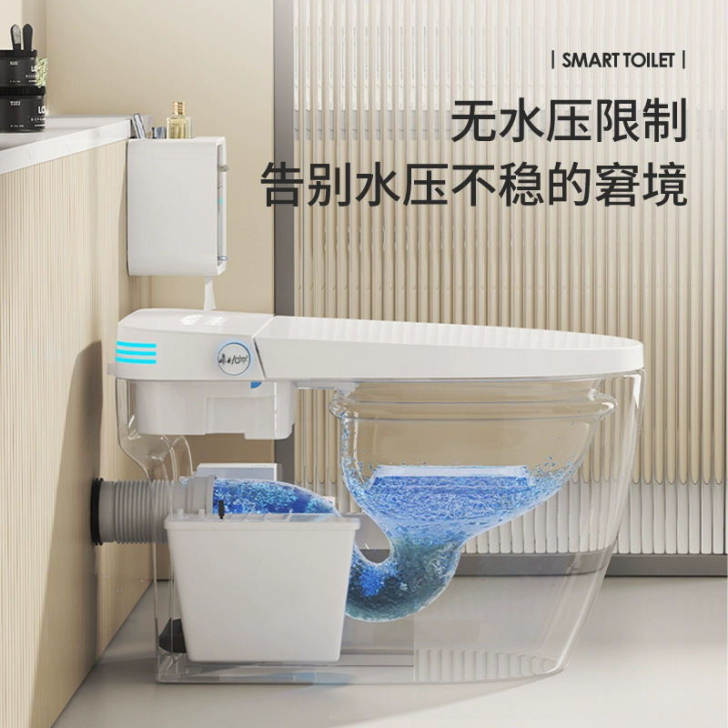 Toilet tanpa batasan tekanan air, pemanas instan, tipe siphon flip-top, toilet terintegrasi bidet dan siphon, pintar.