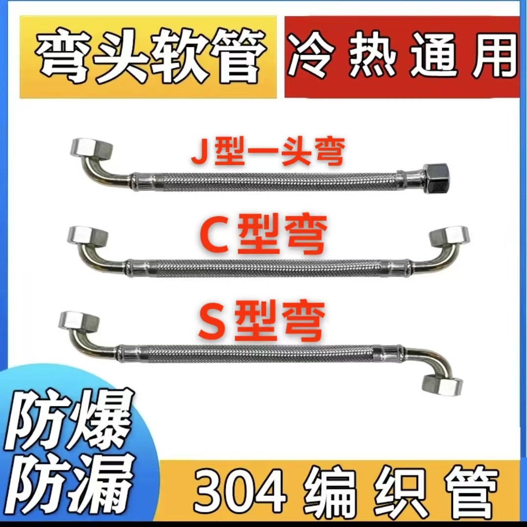 Selang shower 4 sambungan lurus dan satu sambungan siku, baja tahan karat 304, pipa sambungan air untuk pemanas air dan toilet pintar