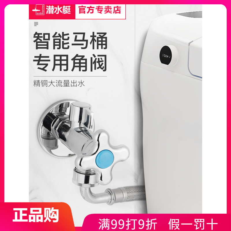 Katup sudut toilet cerdas kapal selam terbuka penuh katup bola aliran besar diameter tembaga inti bulat 4 poin putaran 6 poin