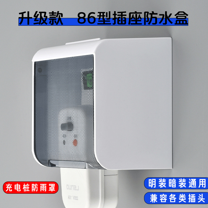 86-tipe perlindungan kebocoran toilet pintar kotak tahan air soket luar ruangan universal tersembunyi terpasang di terbuka kotak tahan percikan penutup hujan tumpukan pengisi daya