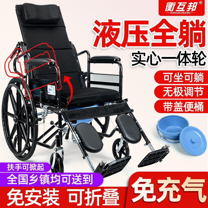 Pabrik grosir kursi roda lipat batang hidrolik multi-fungsi dengan kursi penuh hub roda besar sandaran tangan kursi roda Bisa Xinqi