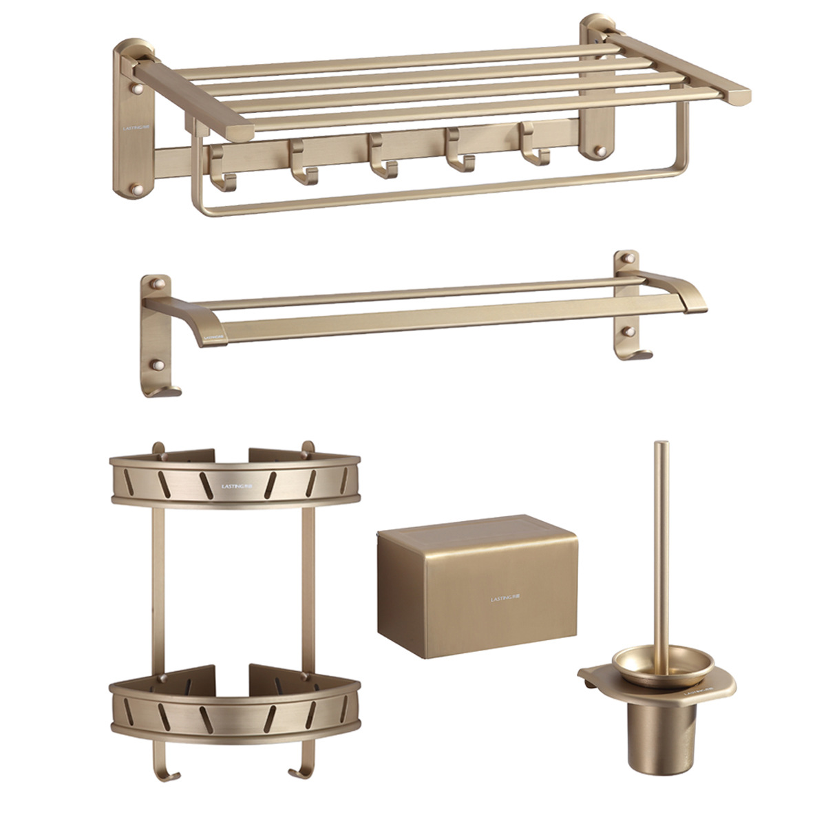 Rak handuk mandi emas, rak handuk mandi kamar mandi gaya mewah ringan, Gantungan dinding disikat, rak handuk mandi emas