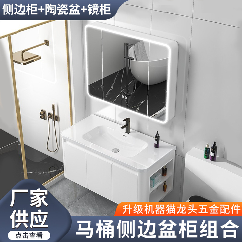 [Lemari Penyimpanan Samping Toilet] Putih Tipe Baru Keramik Satu Tubuh Lemari Cuci Tangan Meja Cuci Tangan Bak Mandi Lemari Kamar Mandi