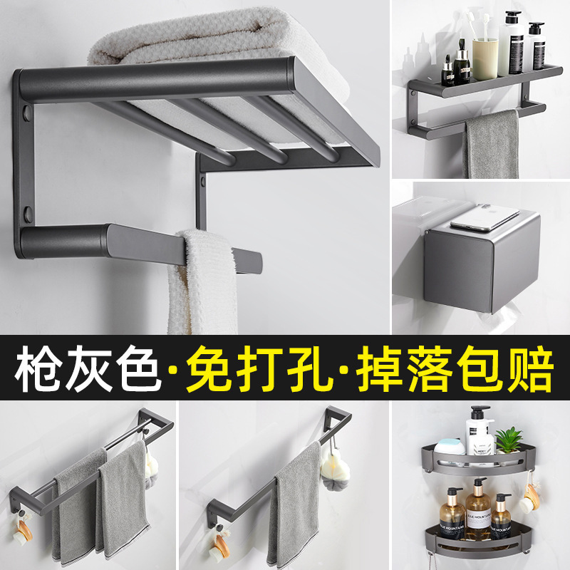 Rak penyimpanan kamar mandi, rak handuk penyimpanan kamar mandi, kit liontin perangkat keras kamar mandi, bebas lubang aluminium