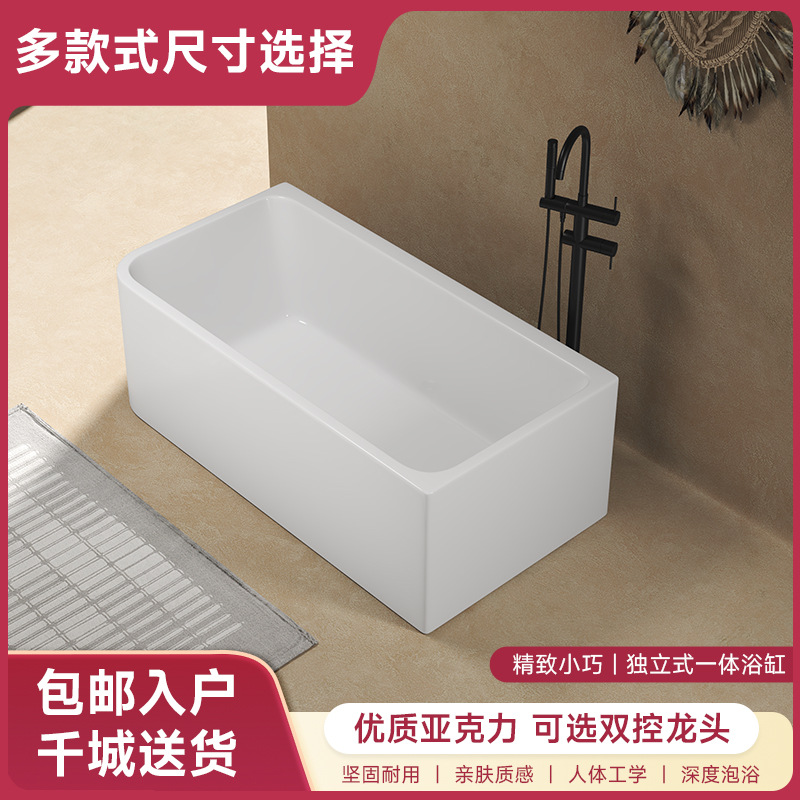 Bak mandi akrilik rumah tangga, bak mandi drainase lantai kecil independen, apartemen kecil, bak mandi selancar akrilik