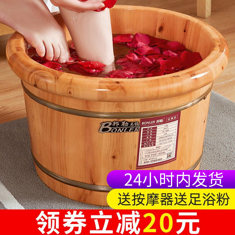 Xishucaixiang Cypress bak mandi kaki, bak mandi kayu kecil bak cuci kaki kayu solid pijat kaki binaural rumah tangga