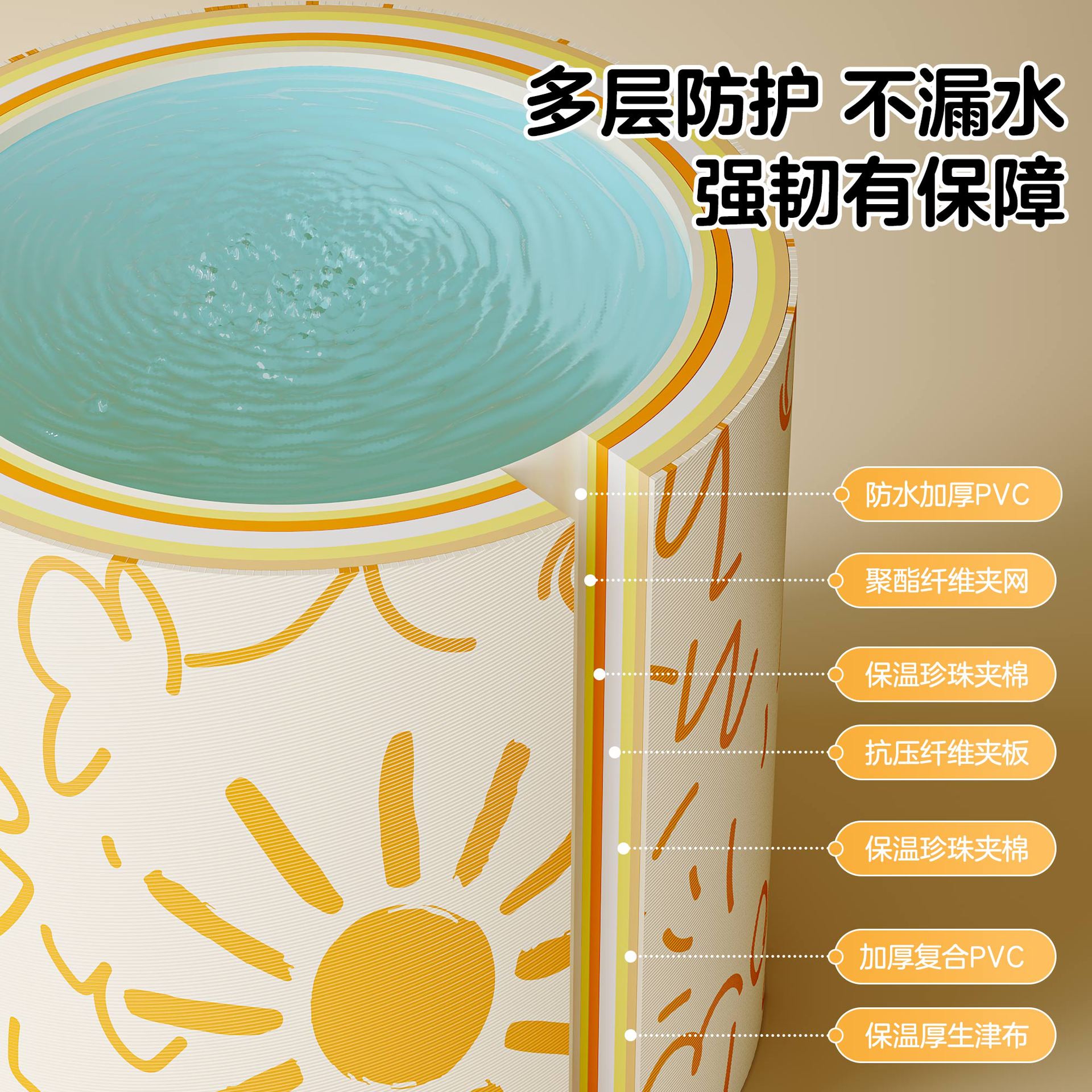 Ember mandi lipat suhu rumah tangga, 1.52 m ember mandi dewasa ember mandi dewasa dipertebal