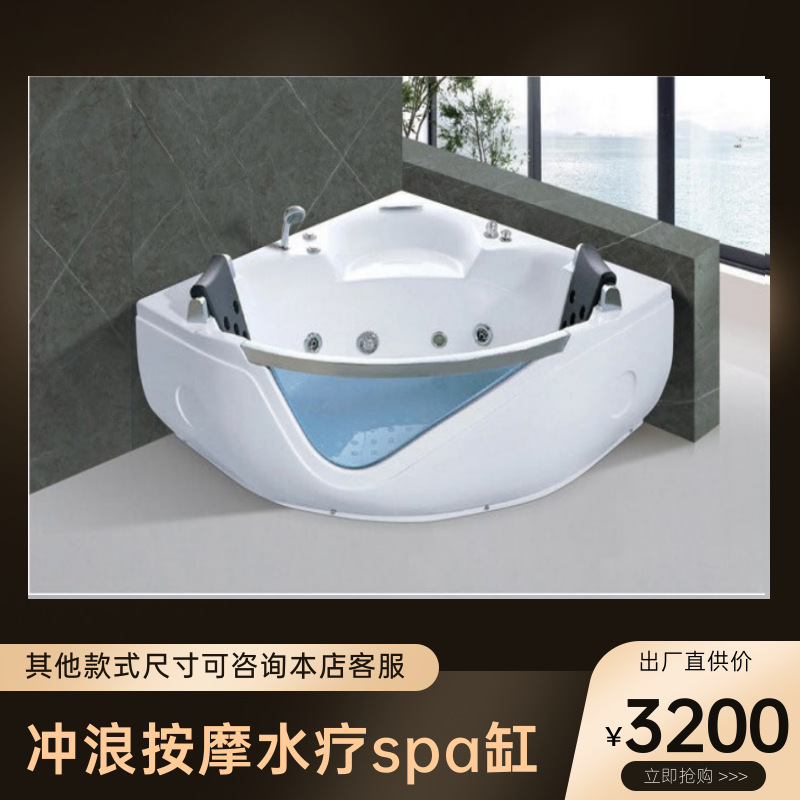 Bak mandi akrilik multifungsi, bak mandi silinder segitiga pijat berselancar, bentuk kipas bak mandi akrilik multifungsi