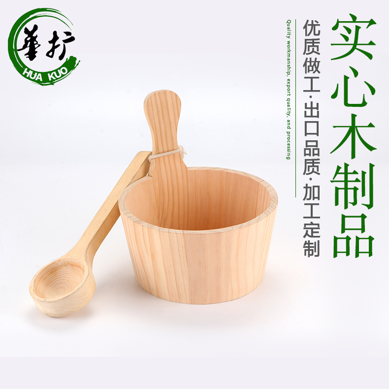 Ember mandi Kamar musim semi panas grosir ember mandi kaki pinus solid ruang sauna sendok kayu mandi setelan ember kayu kecil
