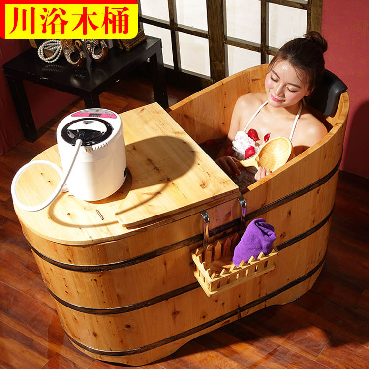 Kawashi bak mandi fumigasi, ember kayu bak mandi gelembung dewasa bak mandi tunggal dengan penutup bak mandi