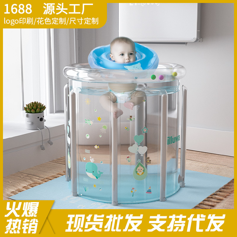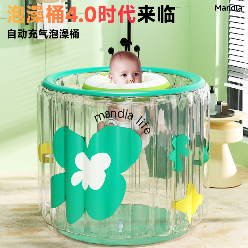 Ember mandi transparan anak-anak, bak mandi anak-anak, artefak mandi bayi lipat tiup, ember mandi keluarga, bak mandi cincin udara dewasa