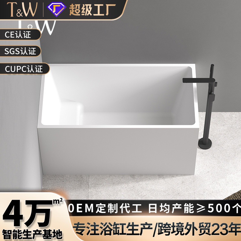 Bak mandi batu buatan untuk penggunaan di rumah, berdiri sendiri, apartemen kecil, persegi panjang, rendaman dalam, bak mandi hotel, pabrik grosir perdagangan luar negeri lintas batas