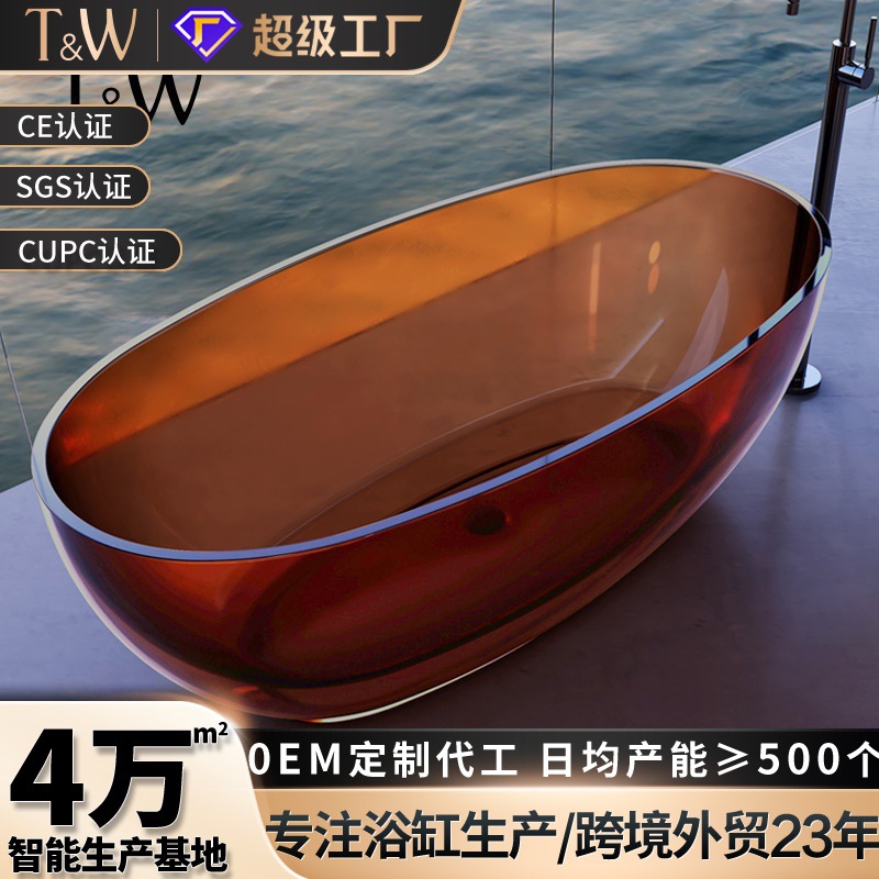 Bak Mandi Transparan Homestay Resin Batu Buatan Warna Kristal Warna Tipis Jaring Merah Model Perahu Bak Mandi Mandi Mandi Hotel Bak Mandi
