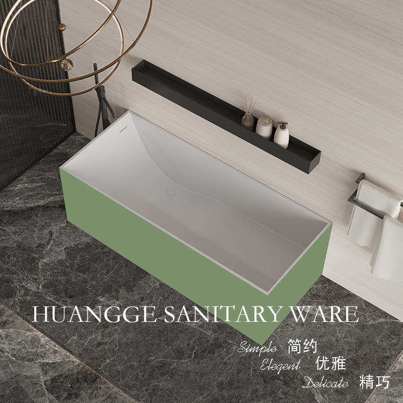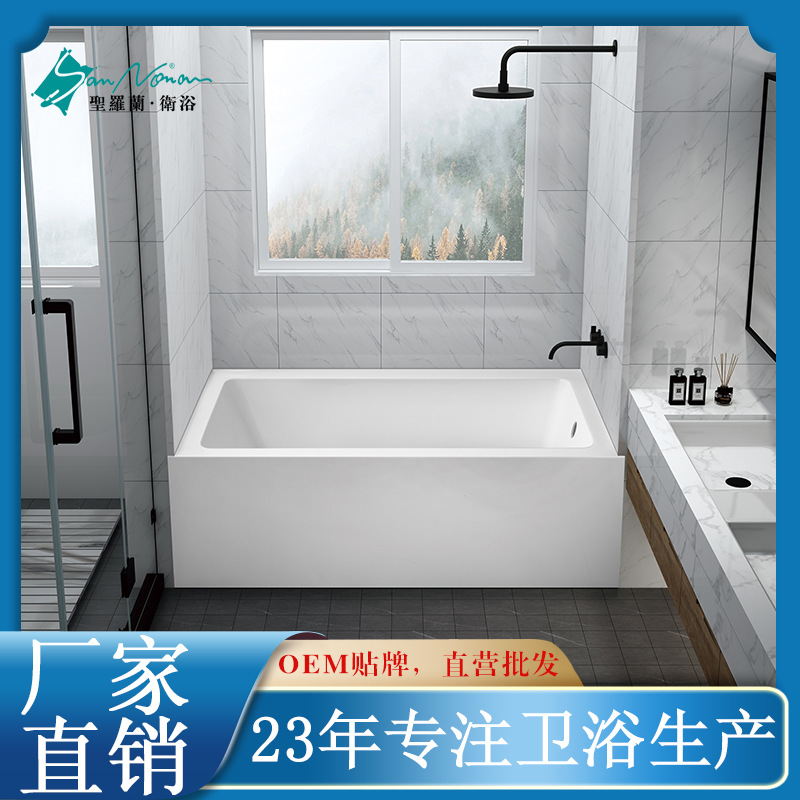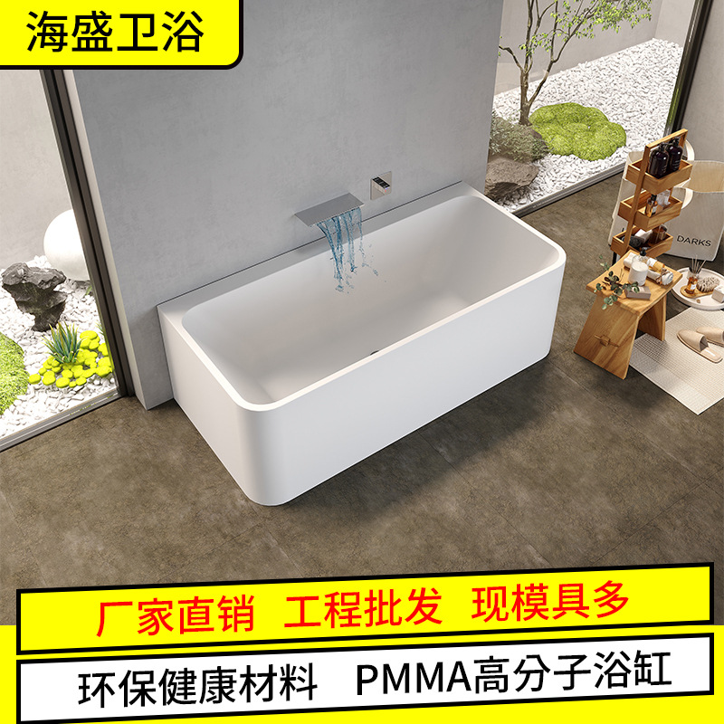 PMMA bak mandi batu buatan, bak mandi persegi panjang rumah tangga apartemen kecil independen