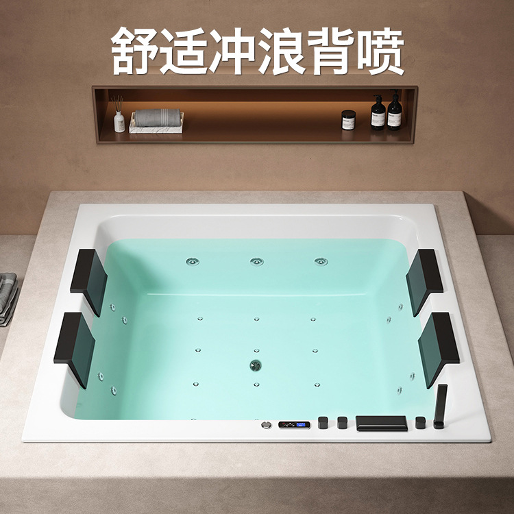 Bak Mandi Tertanam Cerdas Tipe Persegi Pijat Surfing Pemanas Suhu Konstan Gelembung Lampu Suasana Berwarna-warni Bak Mandi Persegi