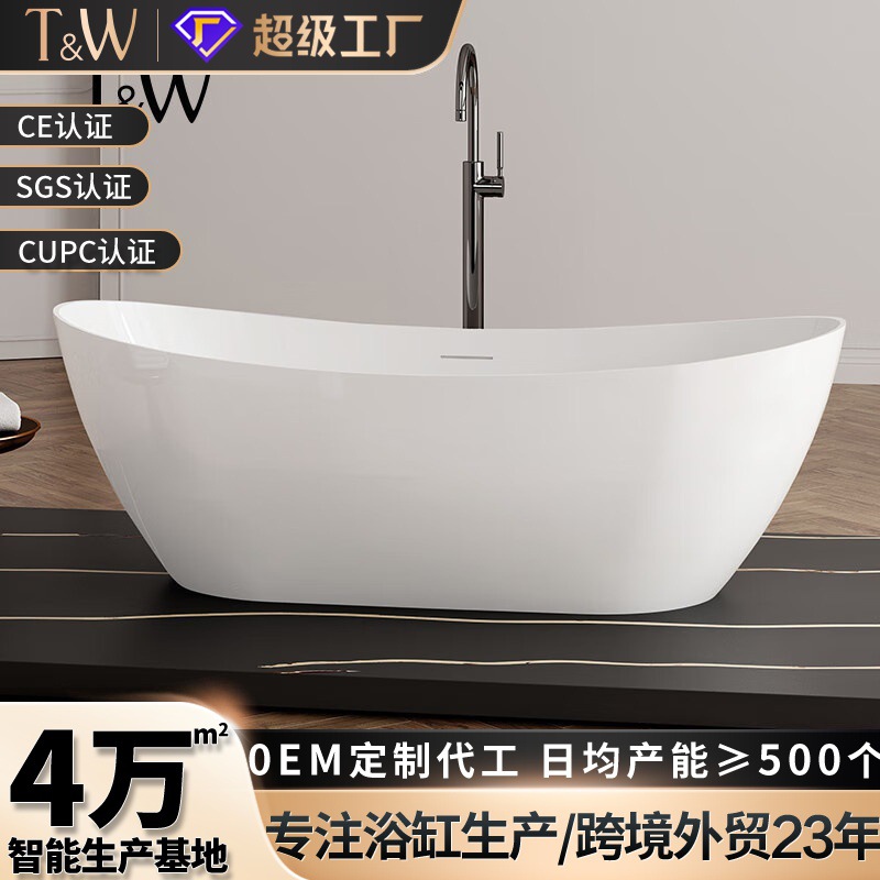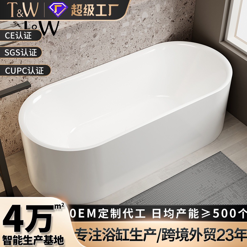 Bak mandi akrilik berbentuk batangan untuk penggunaan di rumah, berdiri sendiri, cocok untuk apartemen kecil, ekspor hotel, dapat ditumpuk, penjualan langsung dari pabrik.