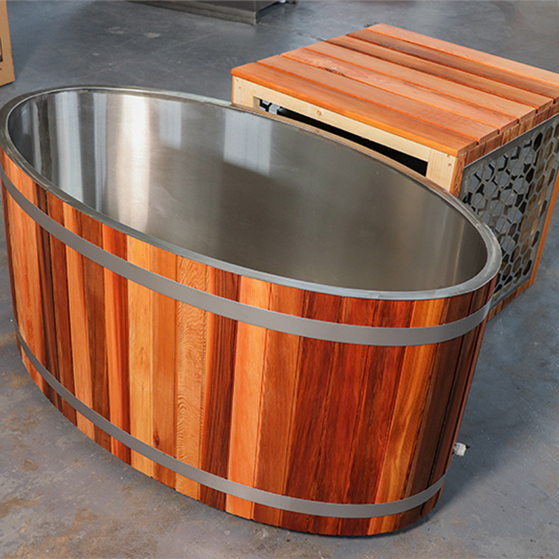 Caisheng Sauna Bak Mandi Es Kustom 304 Stainless Steel Liner Merah Cedar Rok Mandi Air Dingin Ekspor Perdagangan Luar Negeri