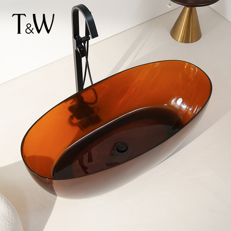Bak mandi transparan untuk penggunaan di rumah di apartemen kecil, bak mandi resin berwarna-warni untuk proyek hotel, homestay, pabrik grosir perdagangan luar negeri lintas batas.