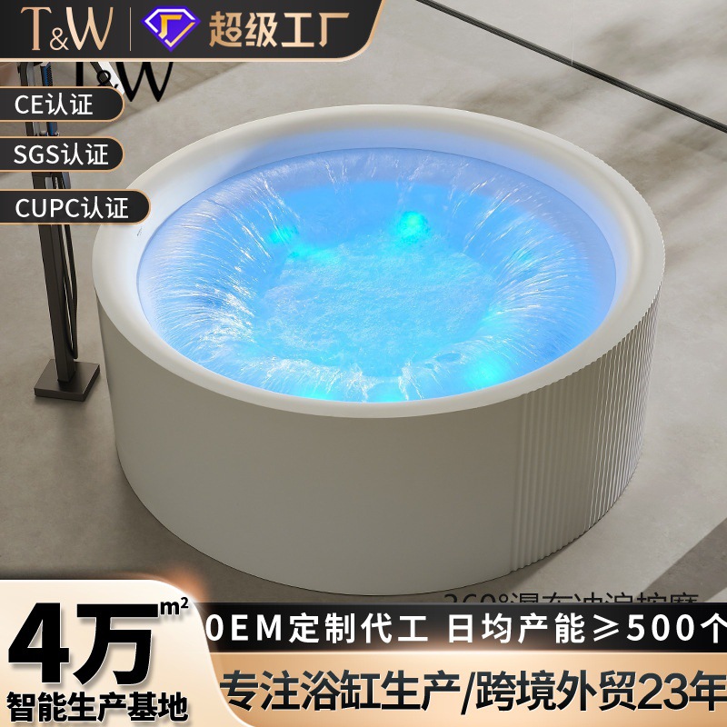 Bak Mandi Pijat TW Travere akrilik Bak Mandi Dua Orang Bulat Bushing Berselancar Air Terjun Besar Berdiri Sendiri