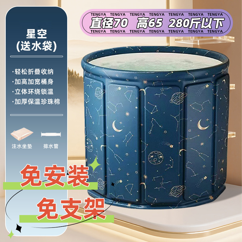 Ember mandi lipat rumah tangga, film aluminium isolasi tas mandi kaki portabel, tinggi dan dalam di atas lutut, ember mandi multifungsi