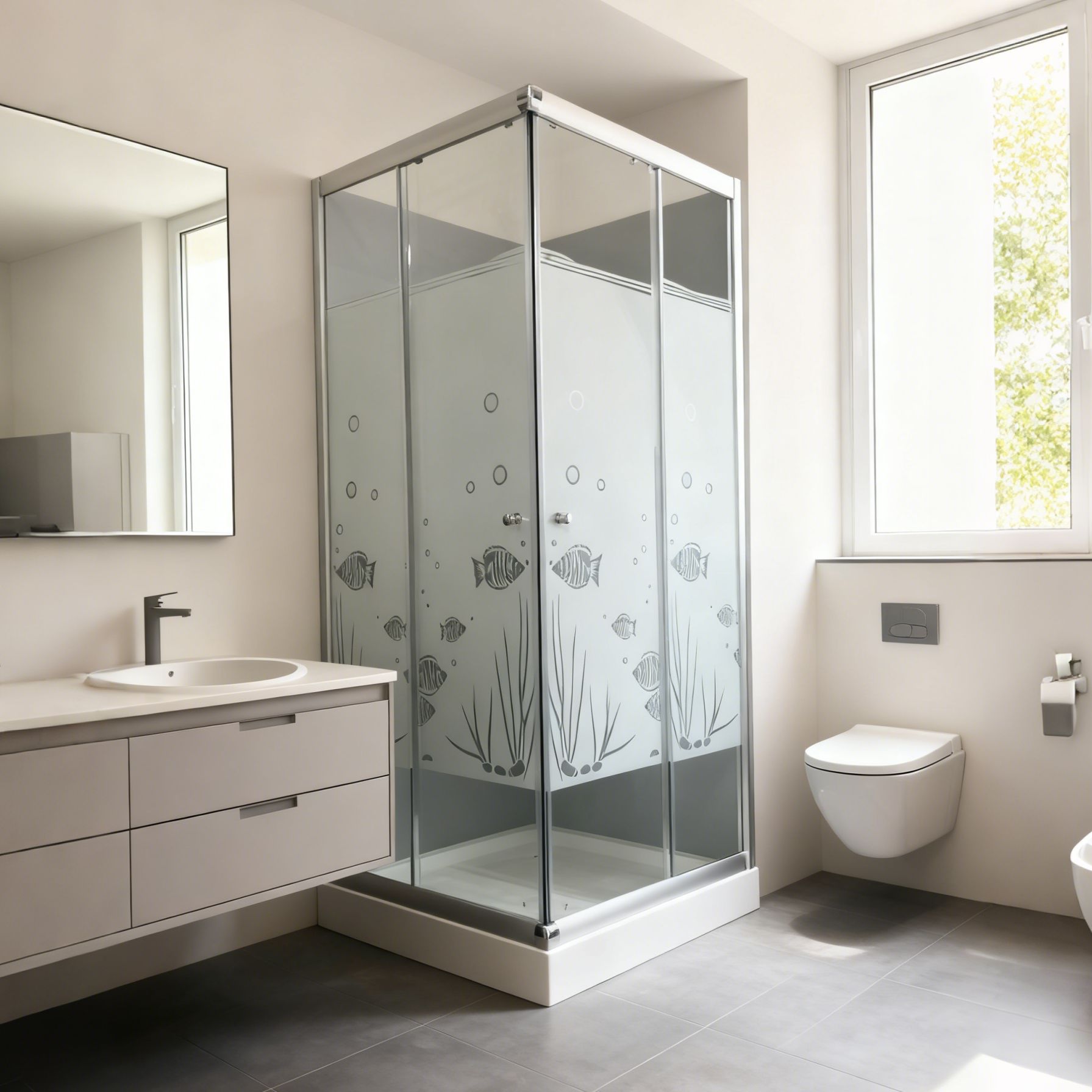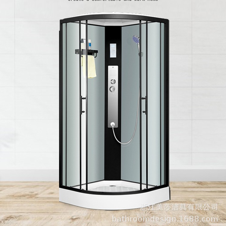 Ruang Pancuran terintegrasi pemisah basah dan kering, kamar mandi terintegrasi partisi kamar mandi pedesaan, kaca tahan ledakan, ruang sederhana berbentuk kipas